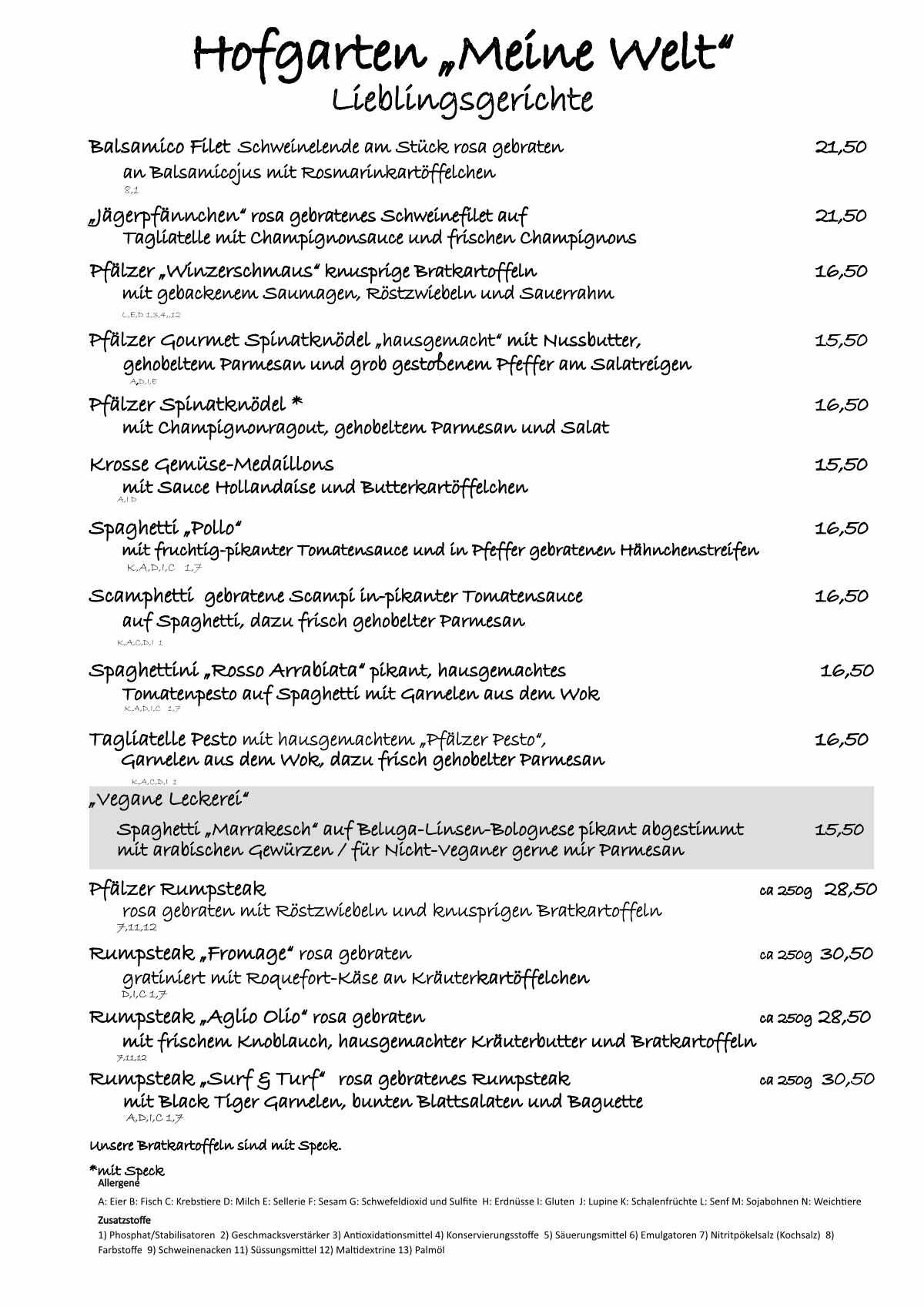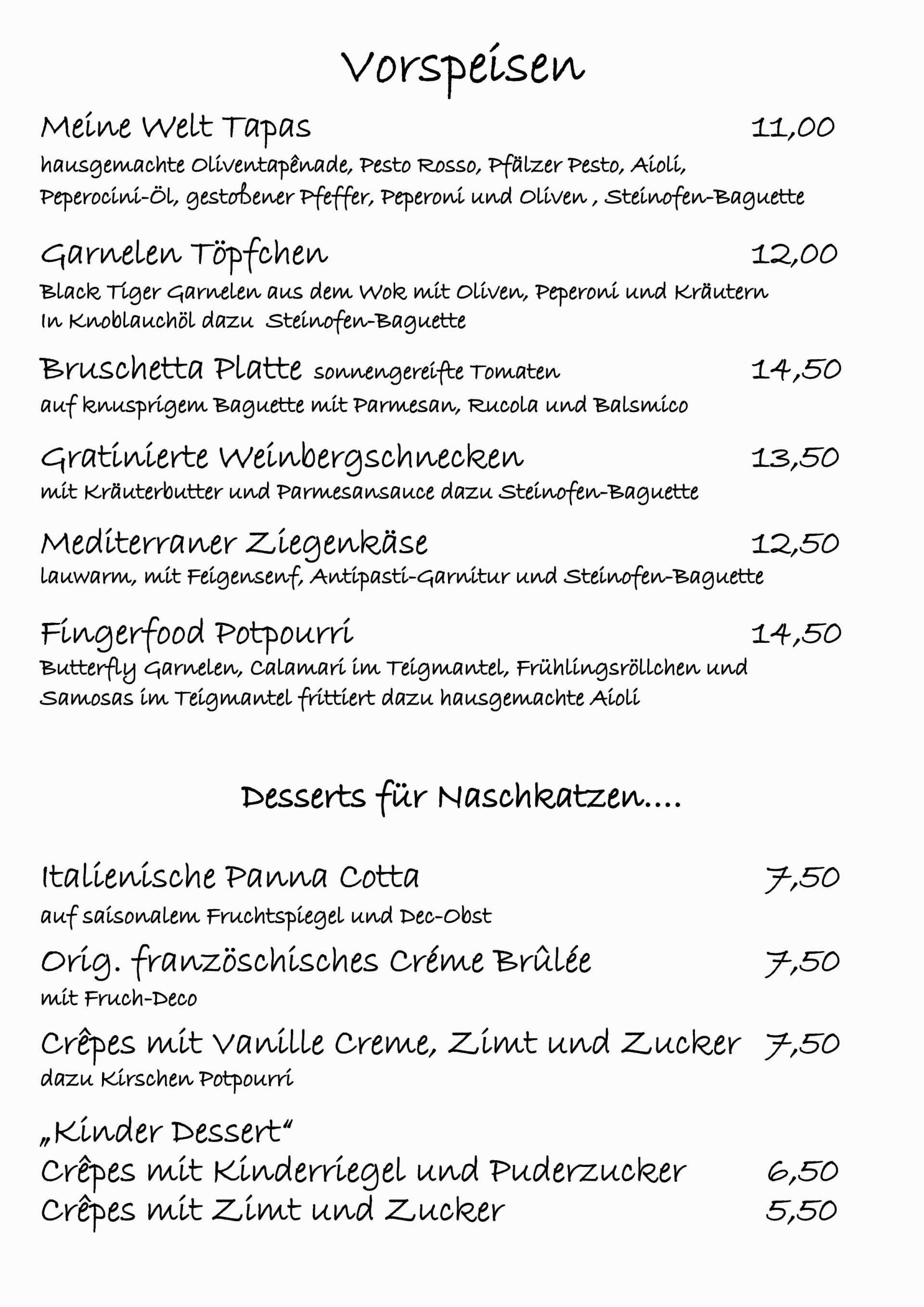 Wir hoffen Ihnen gefällt unsere Speisekarte - da wir unsere Speisen für Sie pesönlich zu bereiten, kann es vorkommen das Sie ab und an,